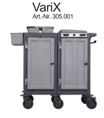 Mit insgesamt drei qualitativ erstklassigen Ausführungen des geschlossenen Reinigungswagens VariX, bieten wir maximaen Nutzen und höchste Hygienestandards für den täglichen Einsatz im Gesundheitswesen und in HoReCa-Bereichen. Die modulare Bauweise ist vielfältiger denn je und ermöglicht für jeden Anwendungsbereich die passende Lösung. Die glatten und einfach zu reinigenden Oberflächen sowie geschlossene Hygienerollen, Eimer und Mopp-Boxen, ermöglichen den Einsatz auch unter Einhaltung von höchsten Hygienevorschriften. Die abschließbaren Türen sorgen für maximale Sicherheit im Objekt. Große, ausziehbare Schubladen bieten ein hohes Ladevolumen. Die großen 150 mm Lenkrollen überwinden mühelos Schwellen und garantieren auch bei voller Beladung einfaches Manövrieren. Die VariX - Reihe ist ein verlässlicher Partner zu einem hervorragenden Preis-Leistungs-Verhältnis und einem hohen Maß an Wirtschaftlichkeit.